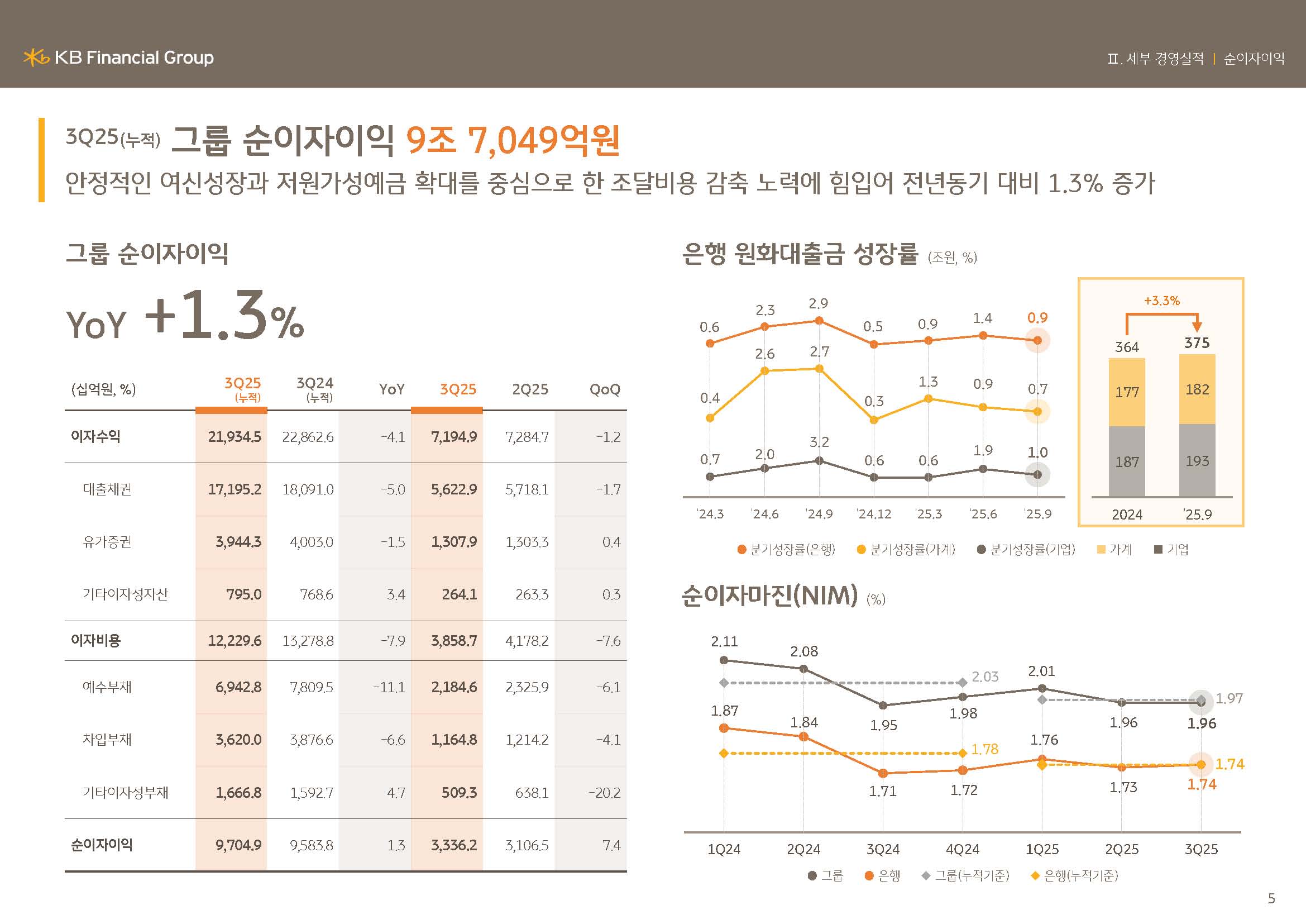 KB금융그룹은 견고한 펀더멘탈을 기반으로 대외 불확실성을 흡수하며 안정적인 이익 창출력을 이어가고 있습니다.