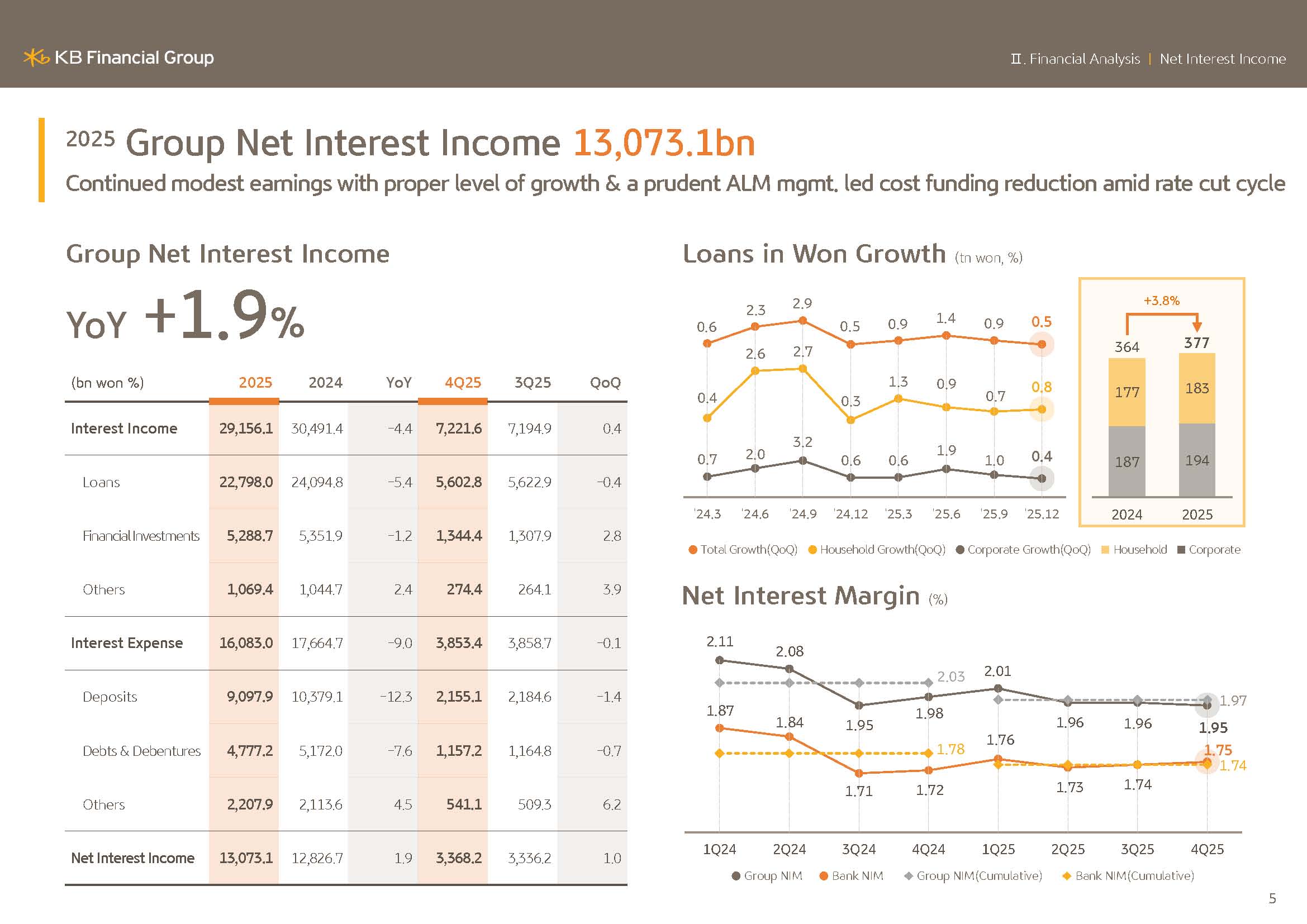 In 2025, the group's net interest income amounted to KRW13.731 trillion, increasing slightly by 1.9%
