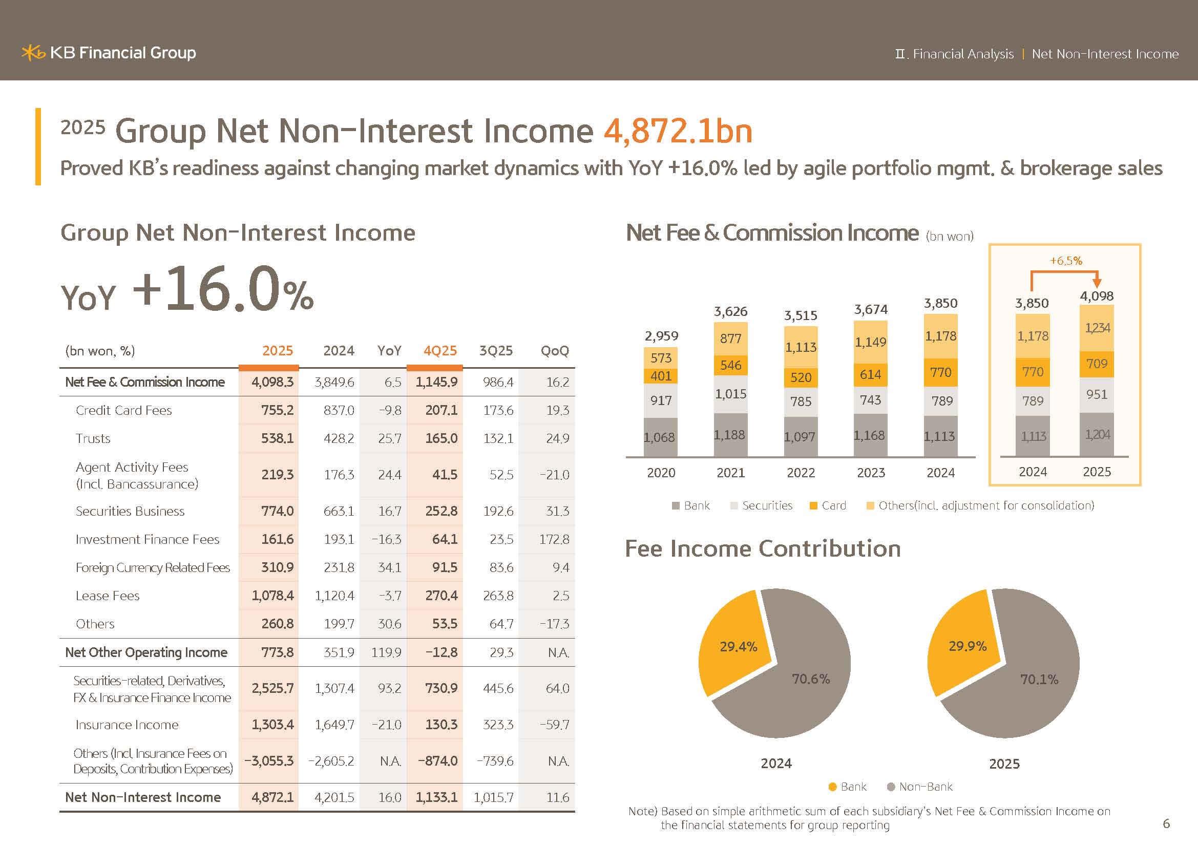 In 2025, the group's non-interest income amounted to KRW4.8721 trillion, expanding sharply by 16%