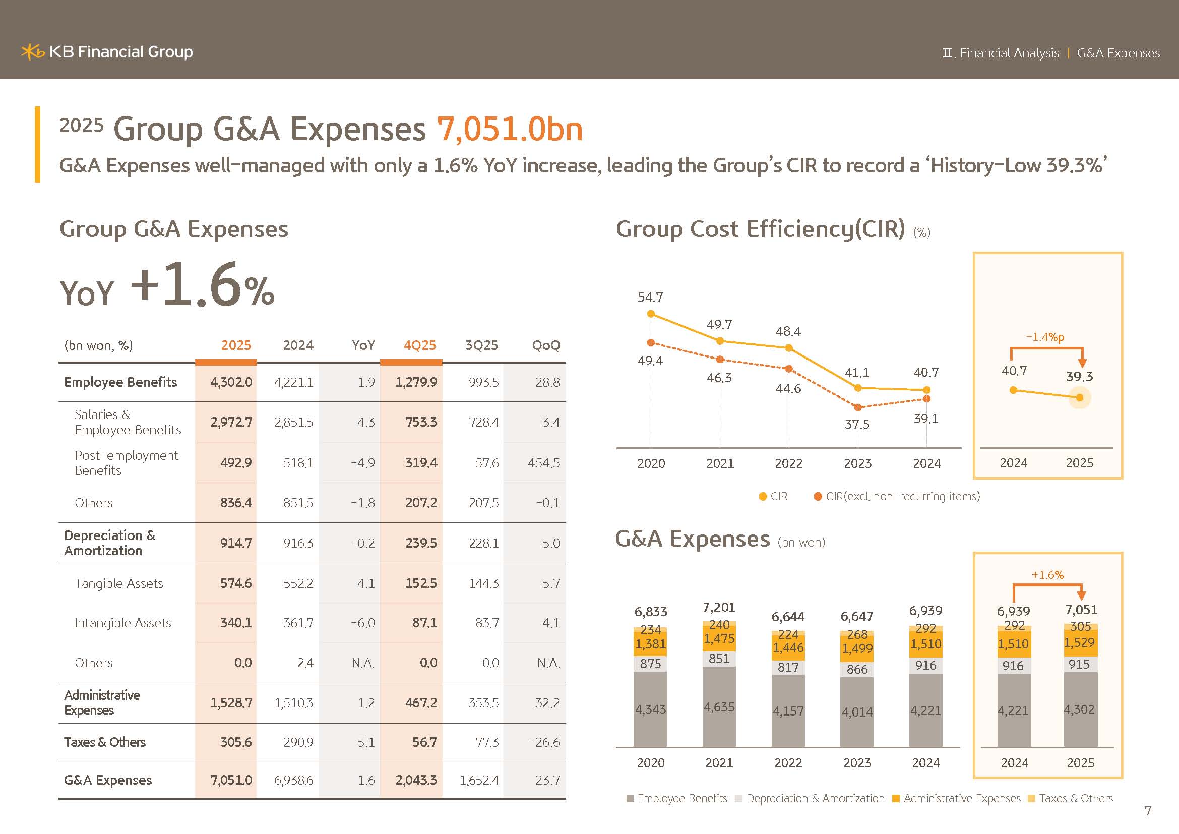 In 2025, the G&A expenses totaled KRW7.0510 trillion, and due to ongoing