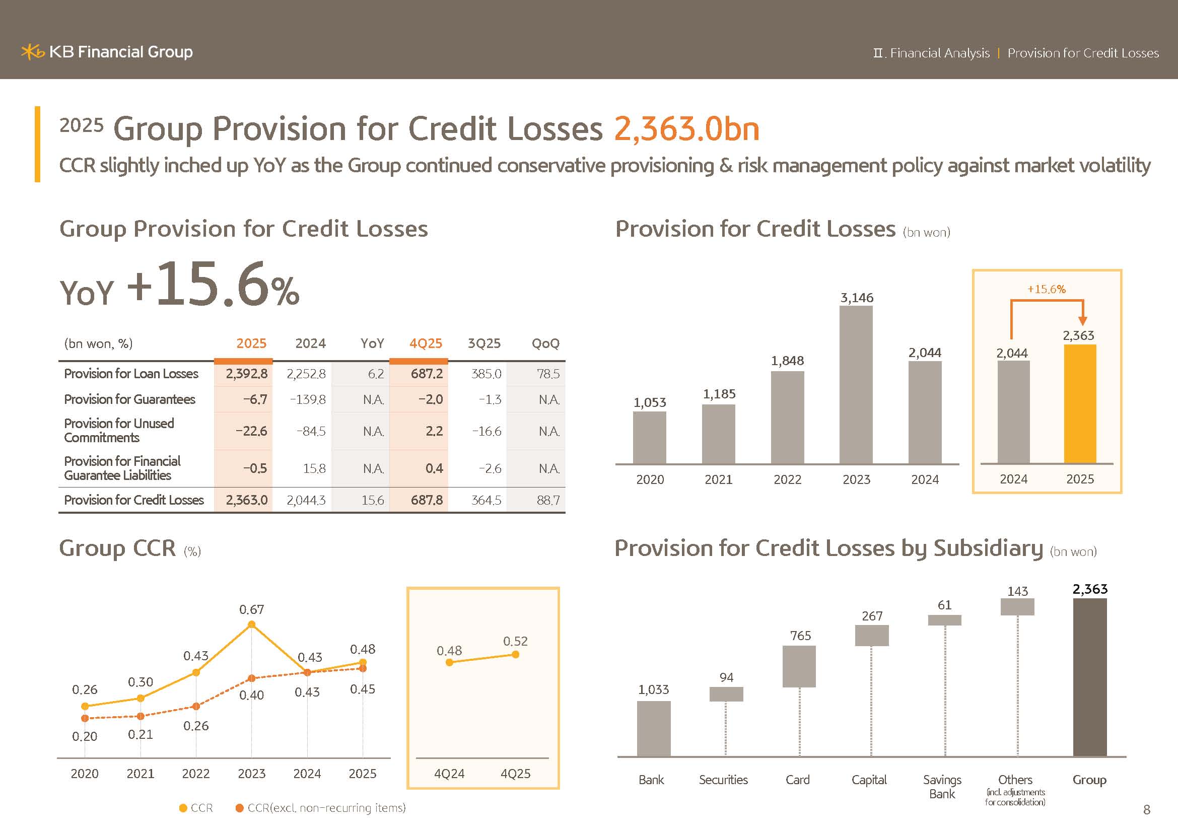 In 2025, the credit loss provision amounted to KRW2.3630 trillion increasing by 15.6% or KRW318.7