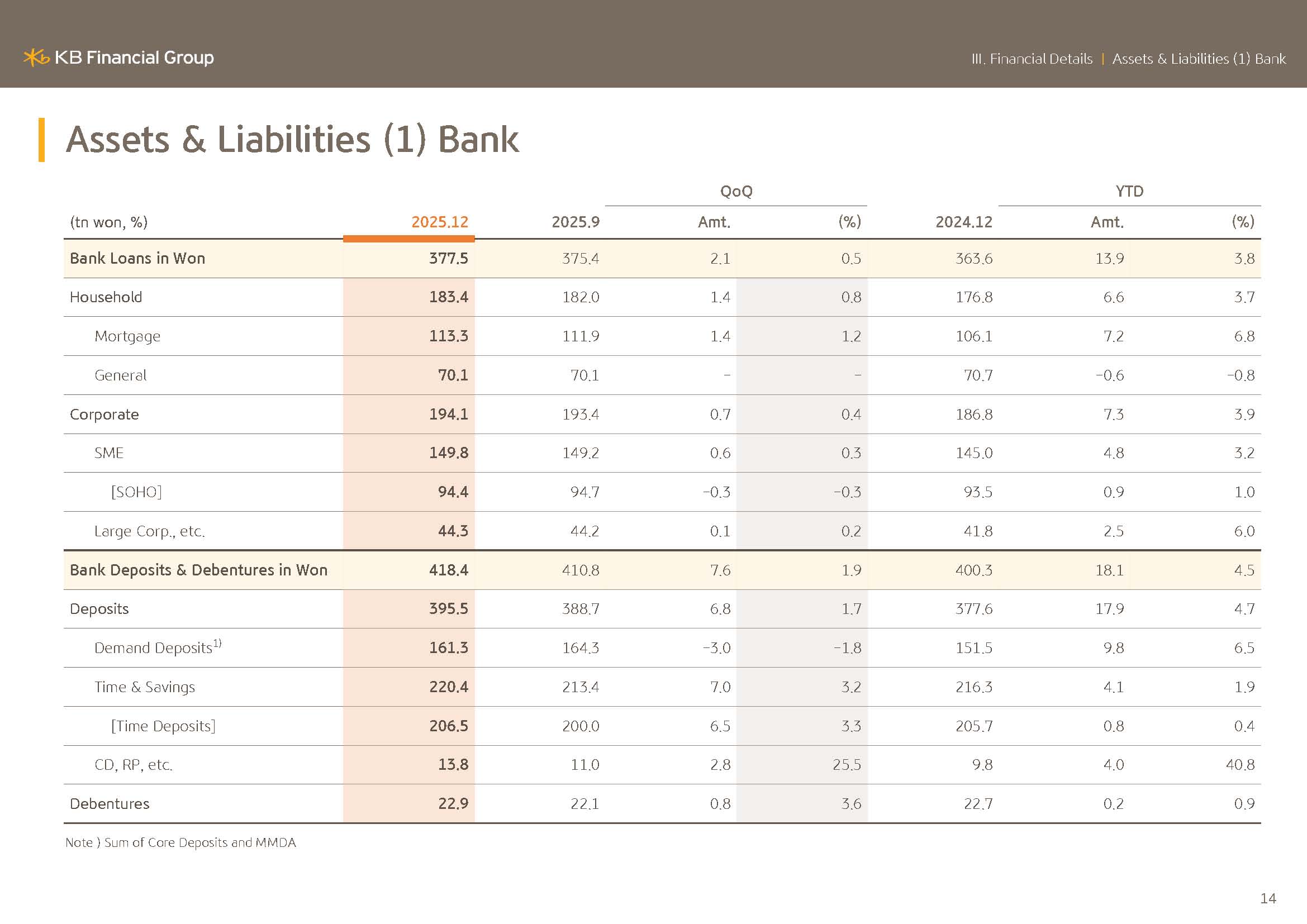 Next, I will discuss the growth of the bank's Korean won loans. As of the year in 2025, the bank's