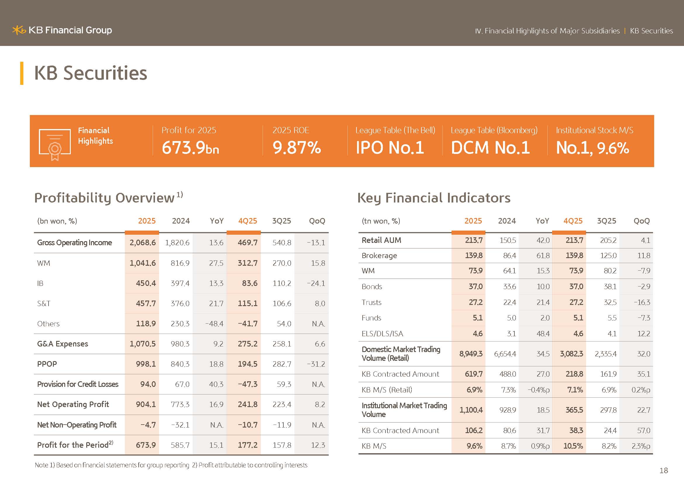 Next, I will cover KBFG business results.