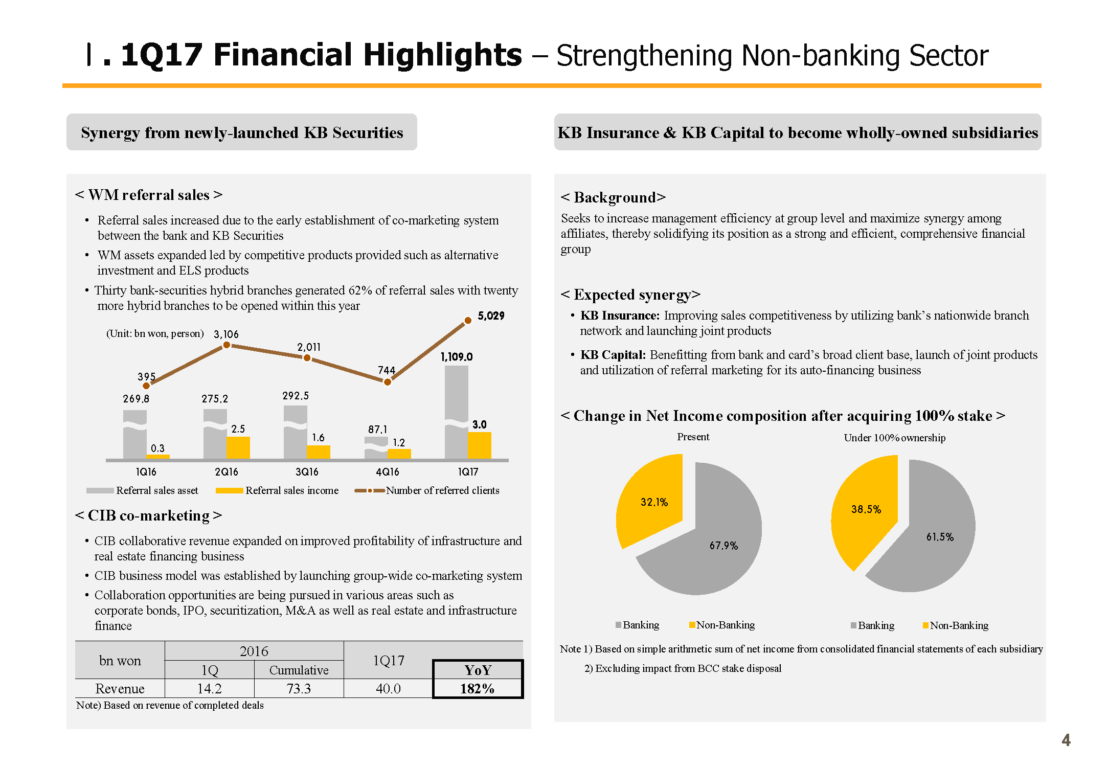 From Page 4, I will elaborate on KB Securities' synergy results and the background behind KB Insurance and KB Capital becoming wholly owned subsidiaries. When you see the synergy creation after KB Securities' consolidation on the top left-hand side, you can see very encouraging results.