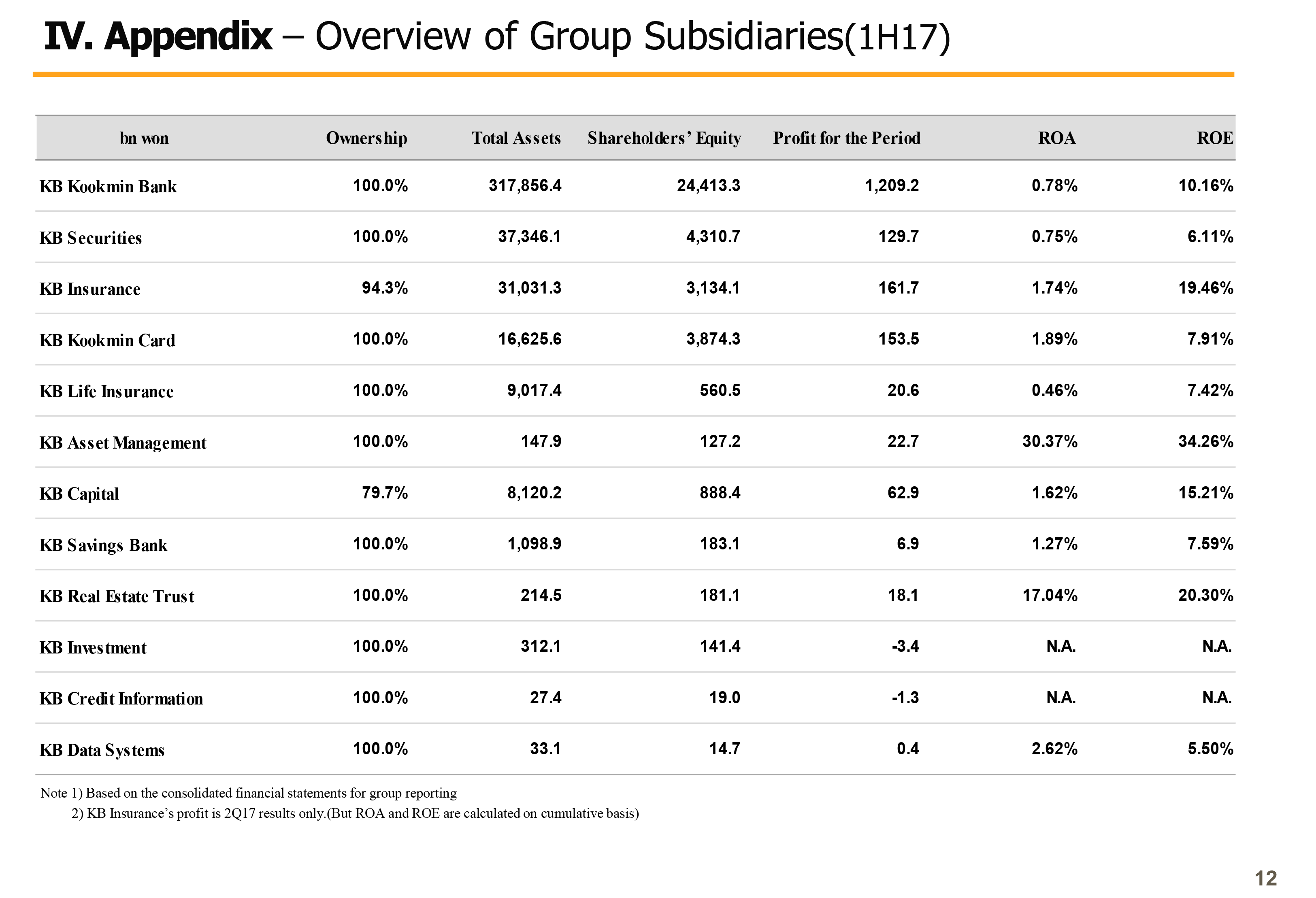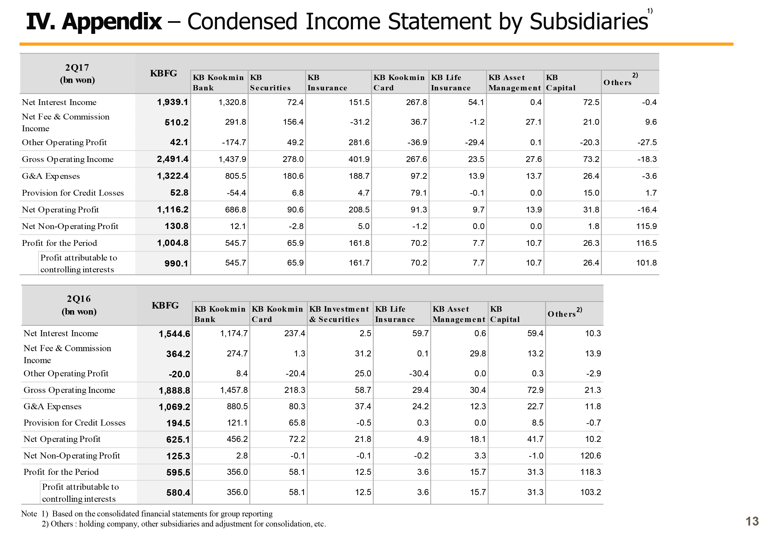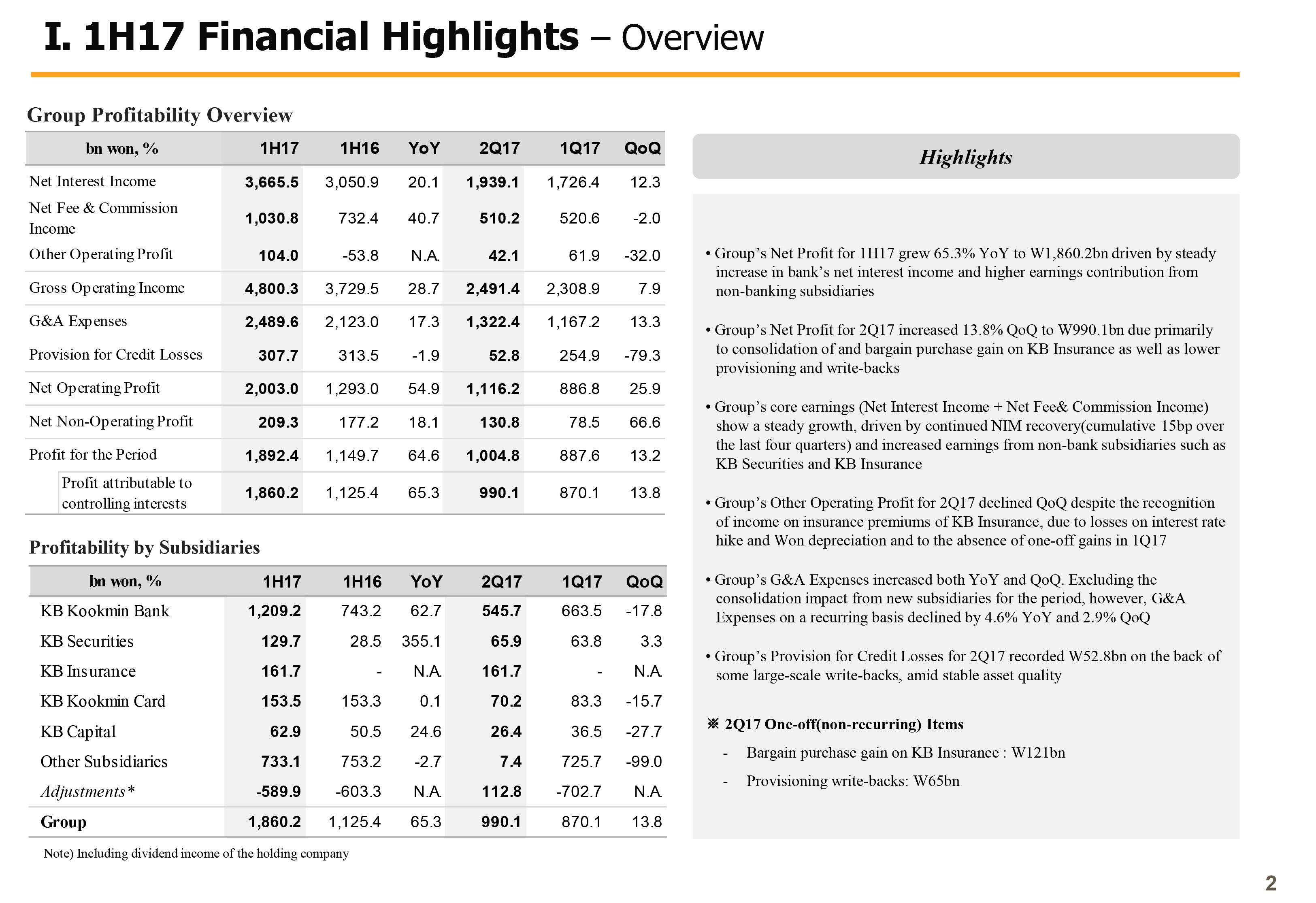 As part of such effort, KB Financial Group started the process of converting KB Insurance and KB Capital into a wholly owned subsidiary since last April. And thanks to the overwhelming support of shareholders of the 2 subsidiaries and KB Financial Group, we have successfully completed purchase of the remaining shares and we were able to complete a more balanced business portfolio and a stable structure for future profitability. KB Insurance has been consolidated into the business results of KB Financial Group from Q2.