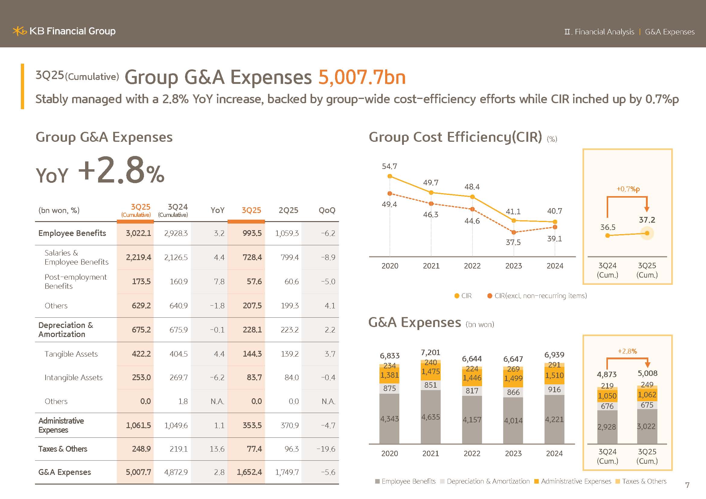 Next, I will cover general G&A. Q3 cumulative general G&A posted KRW5,007.7 billion. And on the back