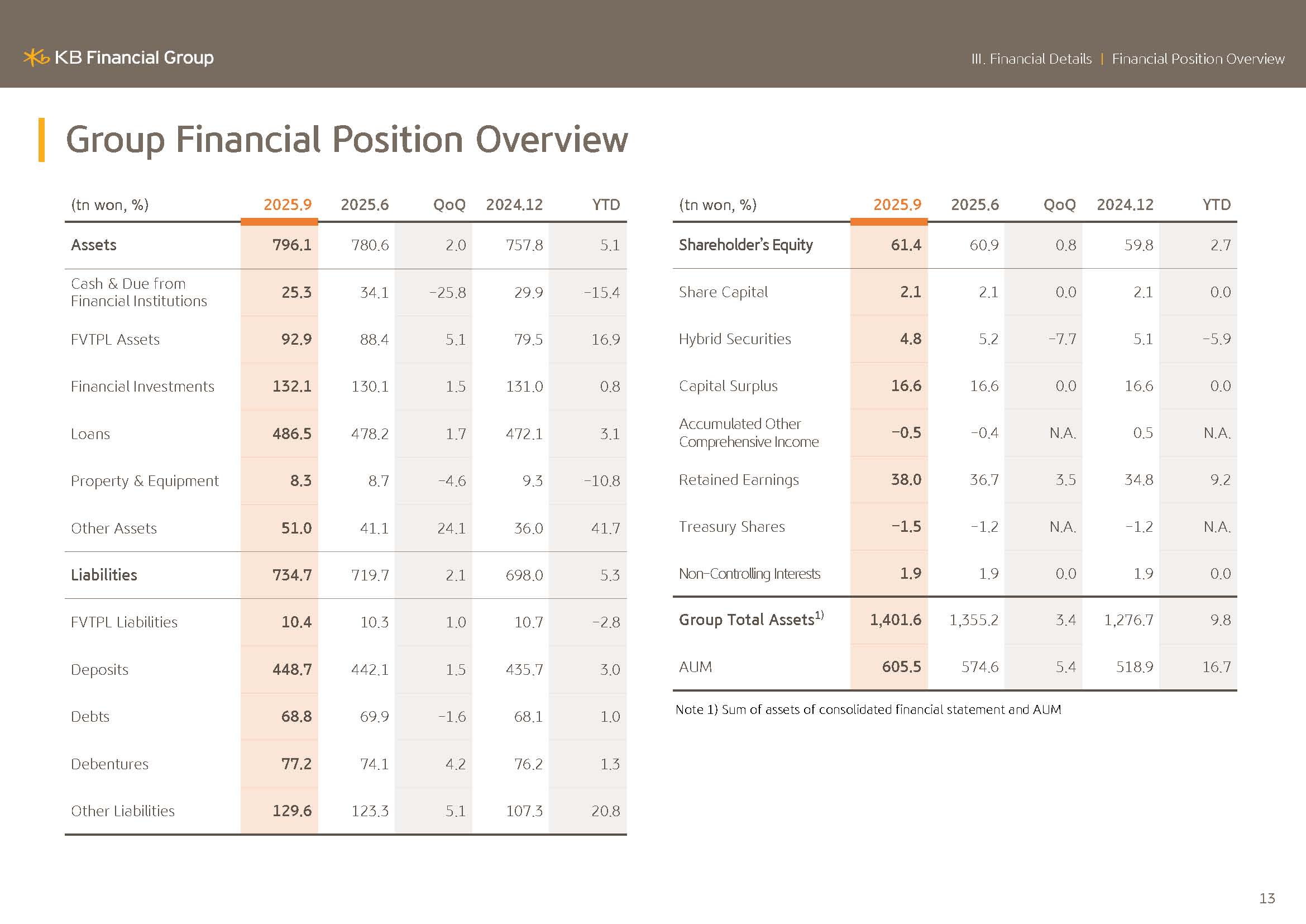 2025 September end group risk-weighted asset posted KRW358 trillion and increased 3.5% compared to