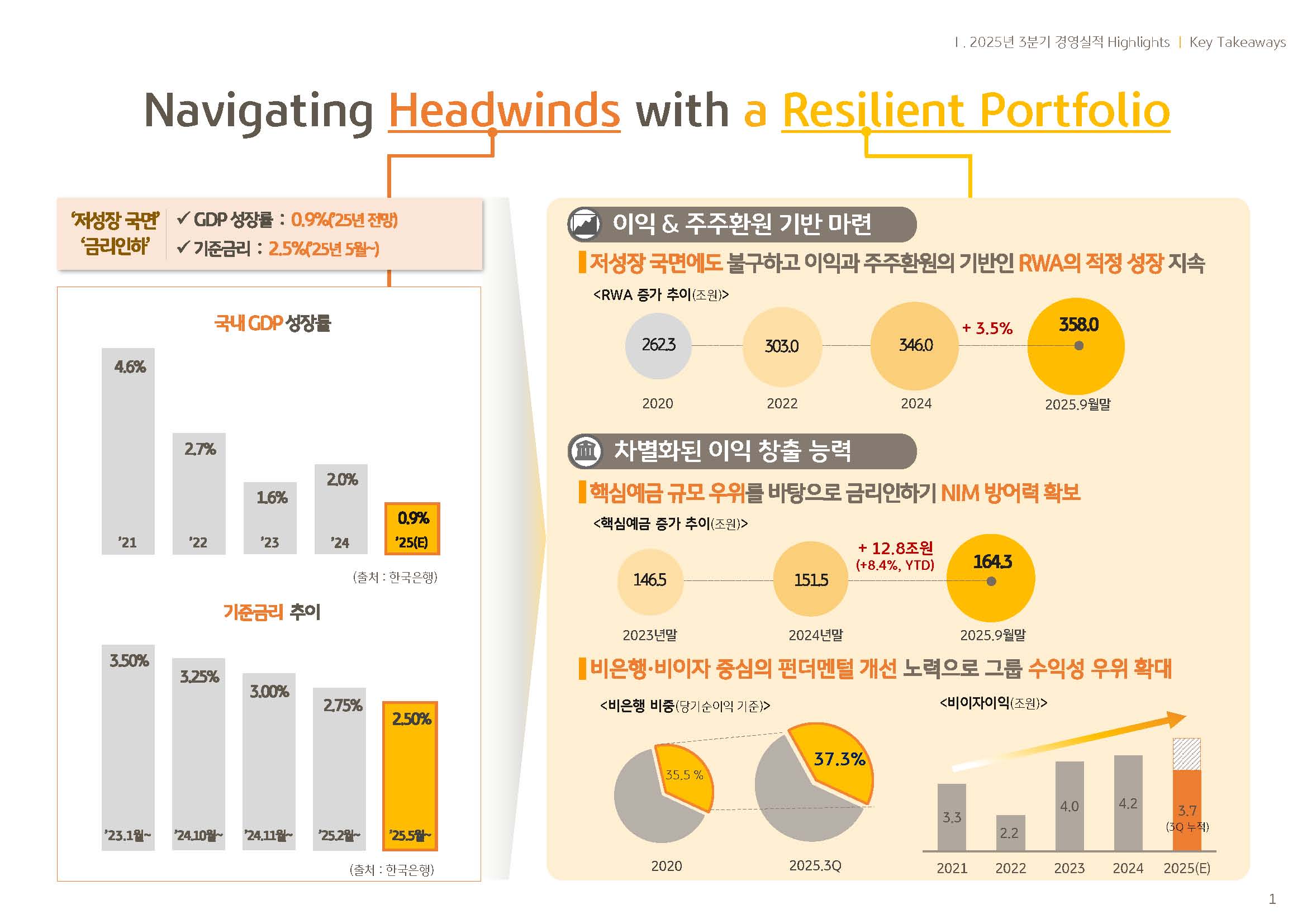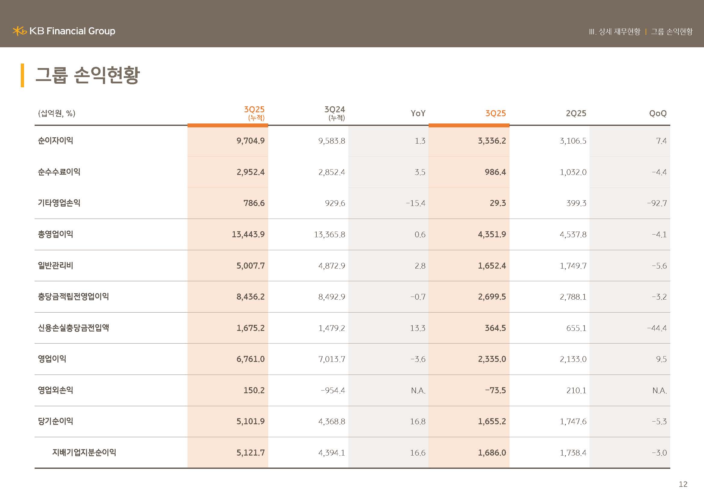 KB금융그룹은 견고한 펀더멘탈을 기반으로 대외 불확실성을 흡수하며 안정적인 이익 창출력을 이어가고 있습니다.