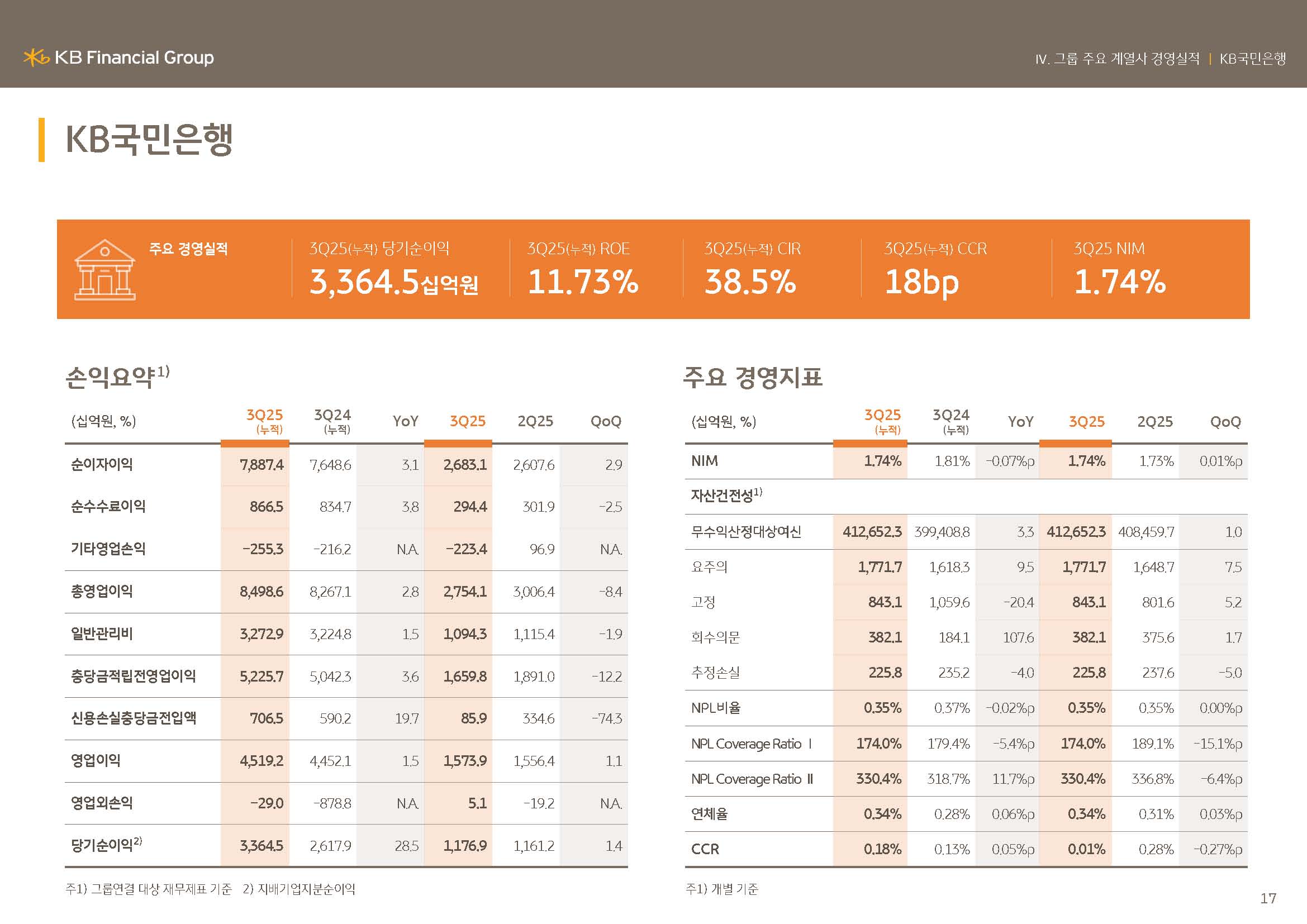 저는 KB금융그룹 IR본부를 맡고 있는 권봉중입니다. 그럼 지금부터 2025년 3분기 실적발표회를 시작하도록